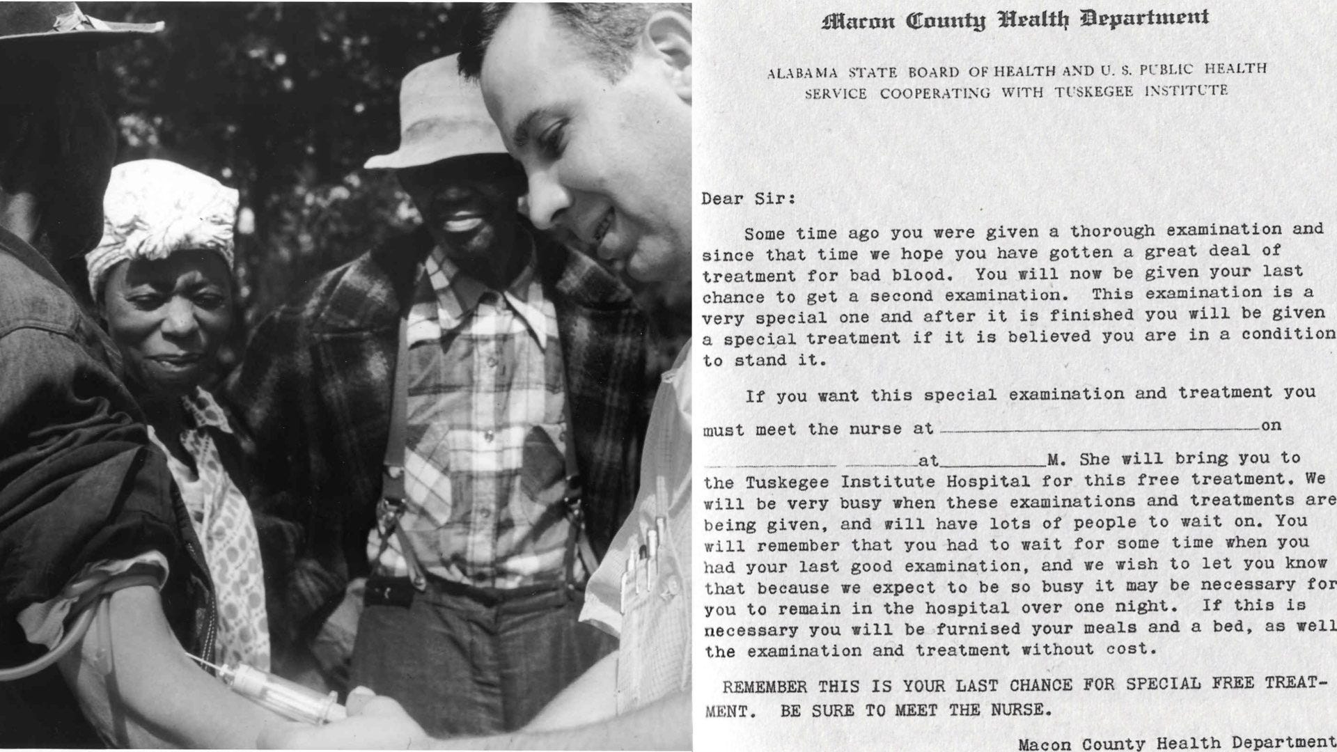 The Tuskegee Study of Untreated Syphilis in the Negro Male (informally referred to as the Tuskegee Experiment or Tuskegee Syphilis Study) was a study conducted along 40 years, between 1932 and 1972, by the United States Public Health Service and the Centers for Disease Control and Prevention on a group of nearly 400 African American men with syphilis. The purpose of the study was to observe the effects of the disease when untreated, though before the end of the study medical advancements meant it was entirely treatable. The men were not informed of the nature of the experiment, nor of that of the disease they suffered, and more than 100 died as a result.